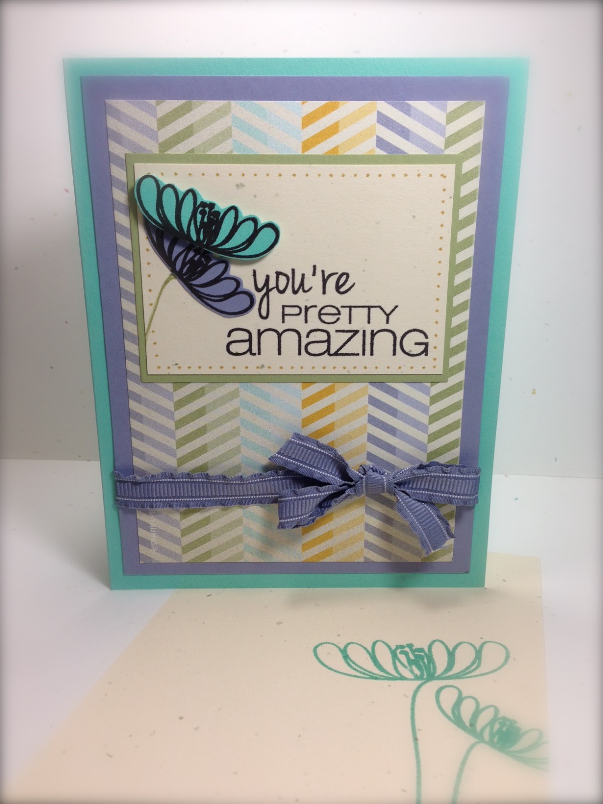 Paper is all SU (Coastal Cabana, Pear Pizzazz, Wisteria Wonder and Afternoon Picnic DSP). Stamps are from Cas-ual Fridays.